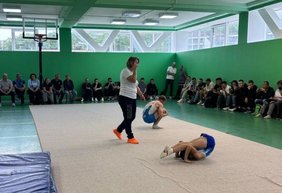 Тренеры-преподаватели спортивной школы «Кристалл» Ольга Сперанская и Евгений Канека вместе со своими воспитанниками Степаном Труфановым и Кириллом Острочревым провели мастер-класс по спортивной гимнастике. Они поделились приёмами техники безопасности, страховки и самостраховки, а также показали основы гимнастики и акробатики.